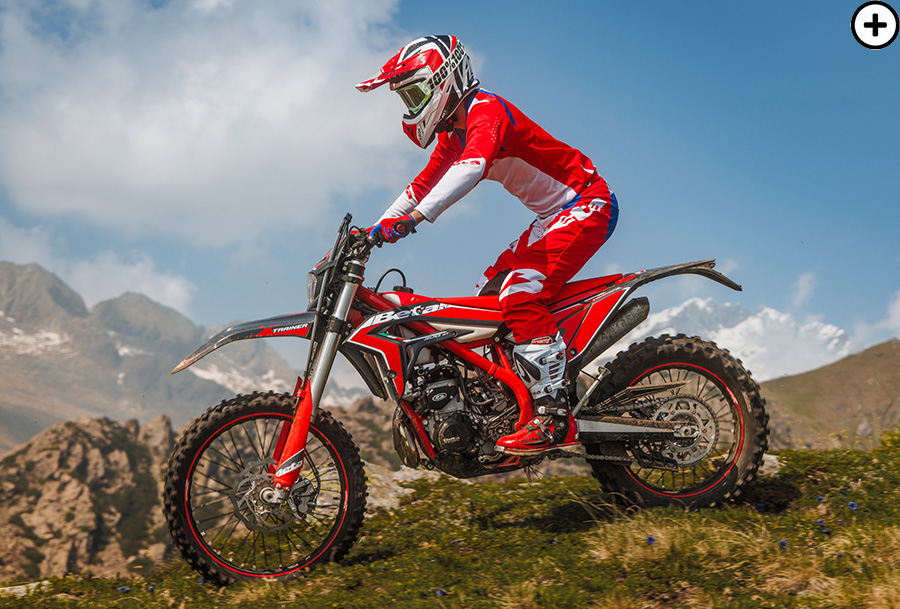 トライアルで培った設計と、Beta独自の250cc/300cc 2ストロークエンジンの「トルク」を存分に楽しめるバイクです。